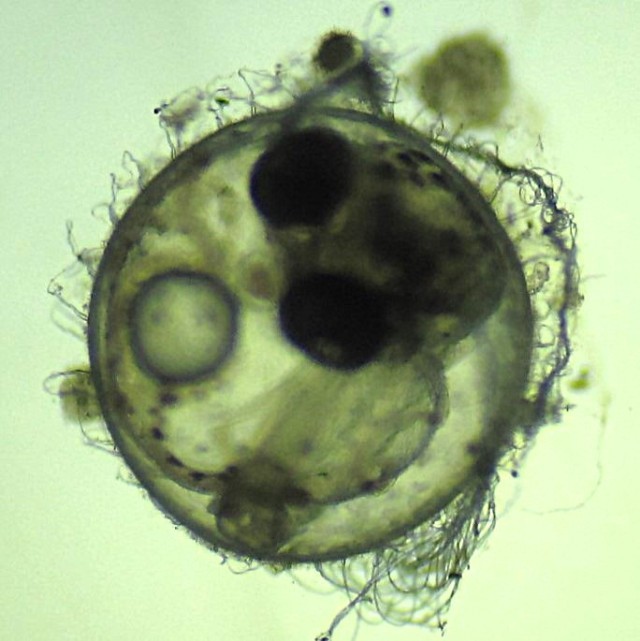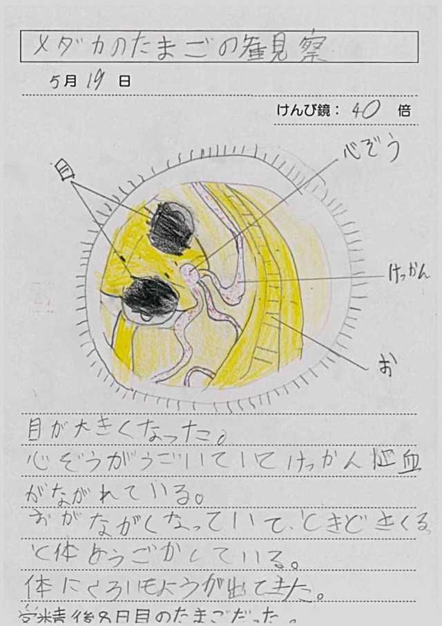 受精後8日目のメダカのたまごを観察しました。
