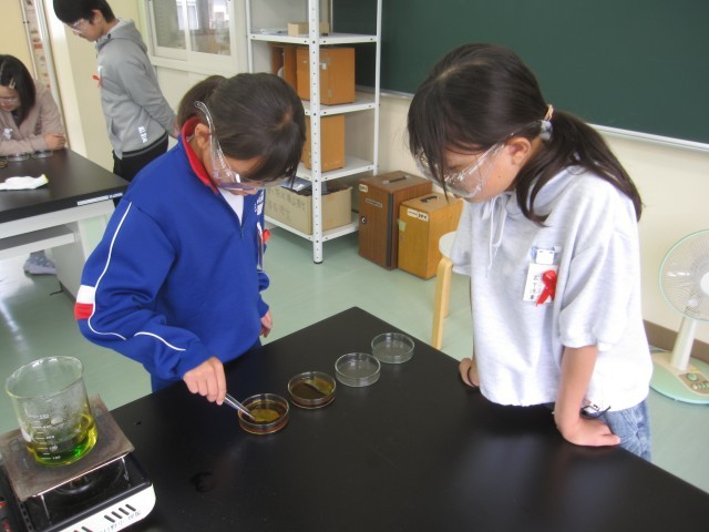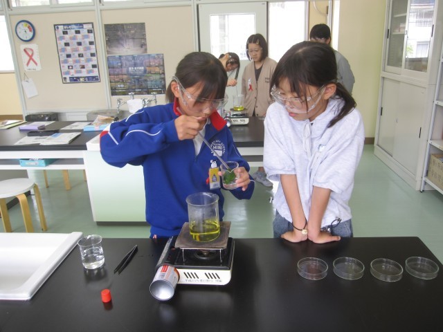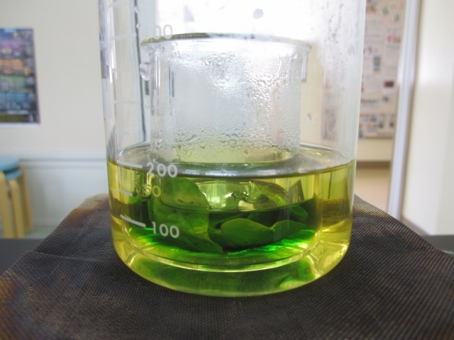 植物の葉に日光が当たると、でんぷんができることがわかりました。