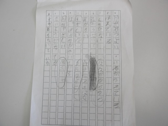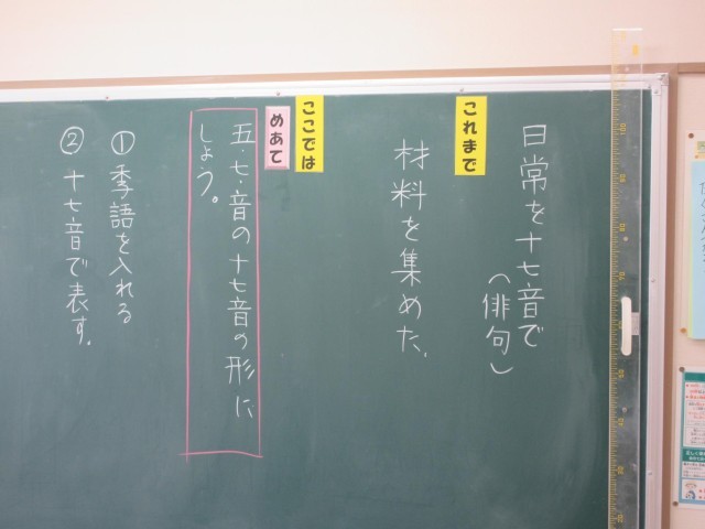 5年生は国語で俳句を書く学習に取り組んでいます。5・7・5のこと、季語のことを学習した後、早速俳句作りをしました。いろいろ辺りを見回しながら言葉をメモ書きしていき、今ベランダできれいに咲いているペチュニアのことを俳句にしました。とてもよい俳句なのですが、ペチュニアに季語があるかどうか考えていると、先生のアドバイスで、国語の先生でもある教頭先生に聞きに行くことにしました。教頭先生からは「夏」が季語であることを教えてもらい、自分の俳句が俳句として成立していることにとてもうれしそうでした。