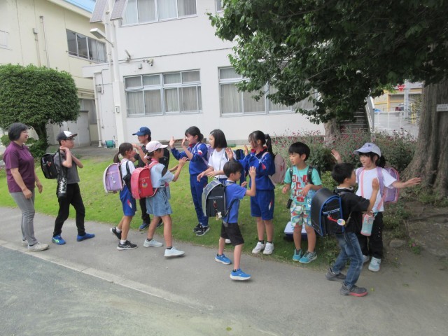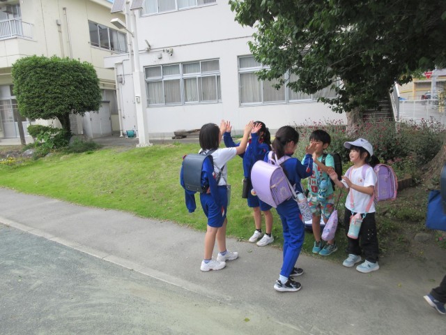 毎週月曜日の下校は、スマイルハイタッチあいさつ運動の日です。「さようなら」のあいさつをハイタッチしながら子どもたち同士が交わして帰宅します。いつものあいさつ運動より子どもたちは楽しそうです。子どもたち同士であいさつか活発に交わせるよう今後も継続して続けていきます。