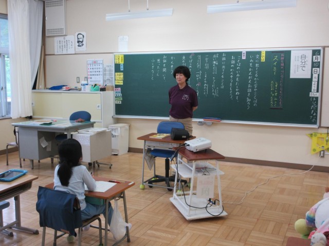 2年生は国語で「スイミー」の学習に入りました。昨日宿題で出ていた音読をもとに、難しい言葉やわからなかった言葉をまとめて、お話を理解しようとしています。先生から「不思議に思ったことは何」と聞かれ、「どうしてスイミーはひとりぼっちだったのかな」と答えていました。