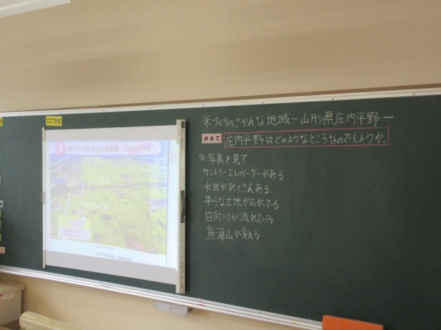 5年生は社会科で庄内平野の米づくりの学習を進めています。今日は庄内平野の特徴について調べています。インターネットで検索してみると、様々な画像が出てきて、その中で雪が冬にたくさん降る地域であること、大きな湖があることなどを調べていました。この後、土地や気候にあった作物として米づくりを進めていることやその中で苦労していることや工夫していることなどを探っていきます。ちょうど先週田植え体験を行ったばかりなので、その体験ももとにしながら学習を進めます。
