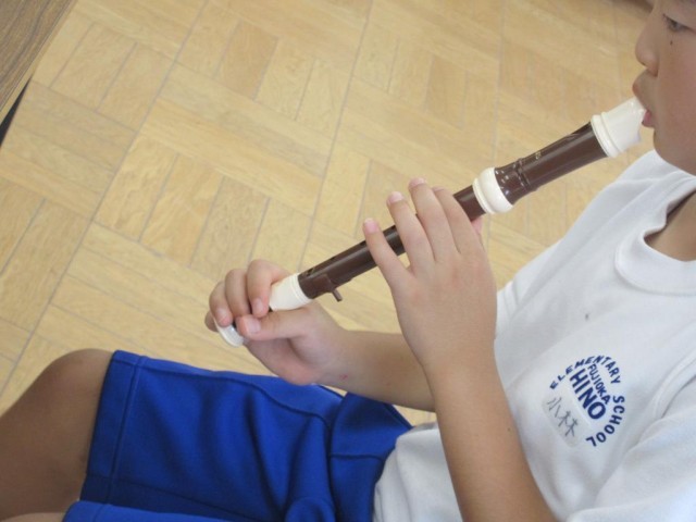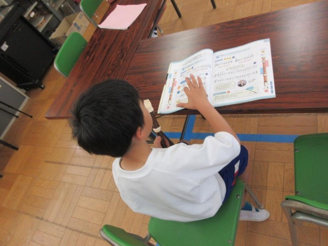 3年生は音楽の学習でリコーダーの練習をしています。今日はタンギングの連取をしていました。最初なかなかうまくできなかったので、先生が音符を指で追いながら、階名で何度も歌ってみて、「同じようにリコーダーを吹くときっとタンギングになるよ」とアドバイスをしていました。まだまだ練習が必要なので、音楽の時間の中で練習を重ねていきます。