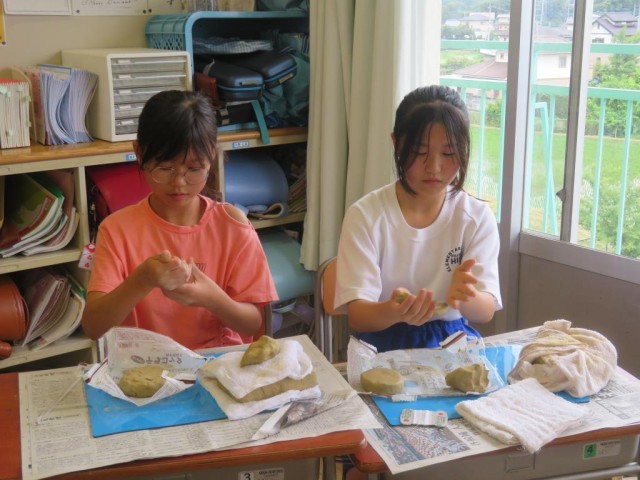 7/11 2~4校時 6年生土器づくり体験(平井小合同)