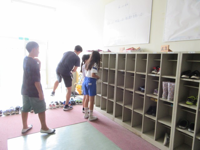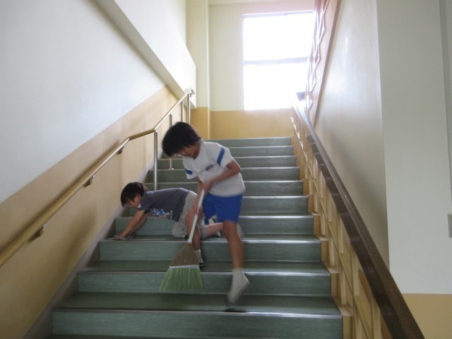 7月14日(月) 大掃除【地域・社会に貢献できる子】 公開日 2025/07/15 更新日 2025/07/15 できごと 5時間目に,1学期の大掃除を行いました。各教室は物を廊下に移し,すみずみまで掃いたり拭いたりできました。階段や玄関の靴箱なども時間をかけて丁寧にきれいにしました。各自が自分で考えて,気が付いたところをみんなで協力して掃除することができました。