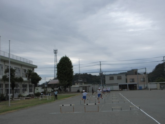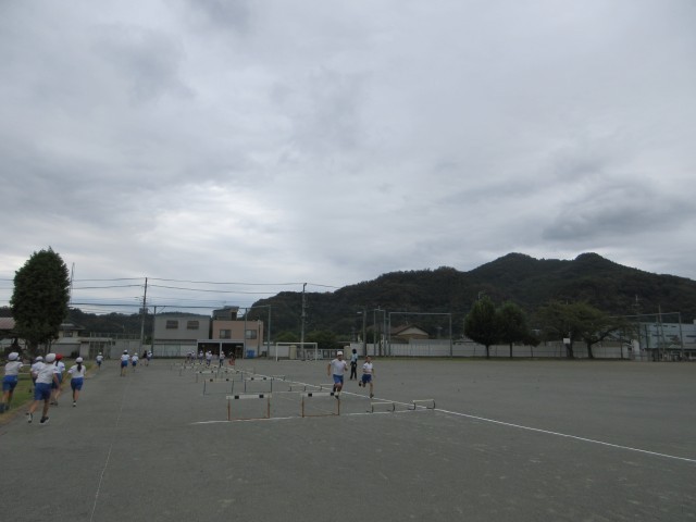 9月4日(木) 5・6年体育【たくましい心身をもつ子】 公開日 2025/09/04 更新日 2025/09/05 できごと 朝から曇り空のため,昨日までの暑さが信じられないくらい過ごしやすい天気になりました。体育も今日は校庭で行います。 準備運動をし,鬼ごっこでウォームアップをし,市の陸上記録会に向けてハードルに挑戦です。ミニハードルでリズミカルに跳ぶことを練習してからハードルを使って走ります。なかなか難しそうですが,積極的に挑戦しています。