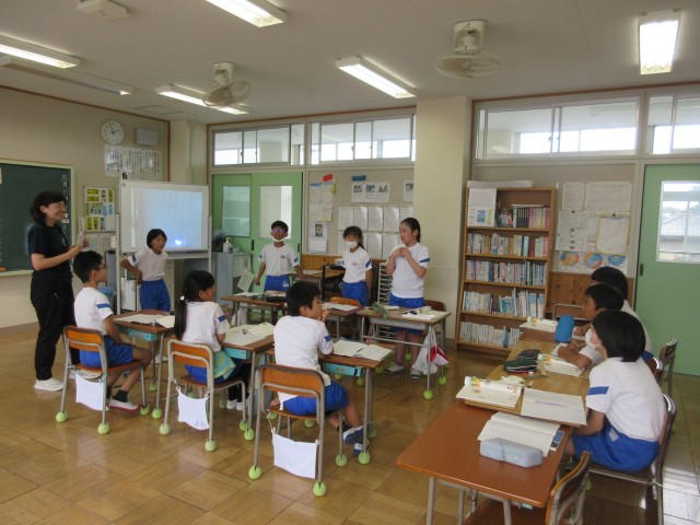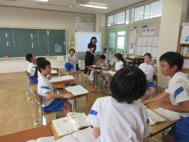 「どちらを選ぶ?(対話の練習)」の学習で、「家族旅行に行くなら、海?山?と「家でペットを飼うなら、犬?ねこ?」をお題に、グループに分かれ、ディベート形式で意見を対立させました。どちらの意見が、納得できるのかジャッジする役割も子供たちに任せることで、話すことだけではない、聞く学習も深められるようにしました。いつもの話し合いとは違い、意見を対立させる学習形態に、子供たちは新鮮さを感じたようで、とても熱心に取り組むことができました。