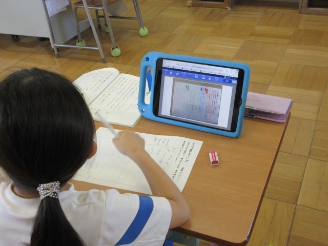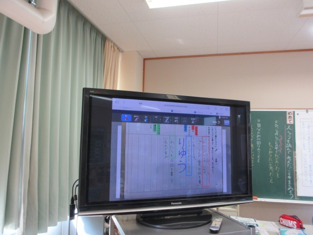 説明文「どうぶつ園のじゅうい」の学習で、今日は「文章を読んで考えたことをまとめよう」をめあてに学習をしました。これまでに、学習してきた内容を視覚化し、それをもとに自分の考えをまとめる時間でした。文章の構成の仕方について、「筆者の書いた文で驚いたこと」、「自分が感じたこと」、「自分の身の周りの出来事と比べて考えたこと」をタブレットで色分けをして明確化し、それをヒントに子供たちは考えを深め、文章を書くことができました。