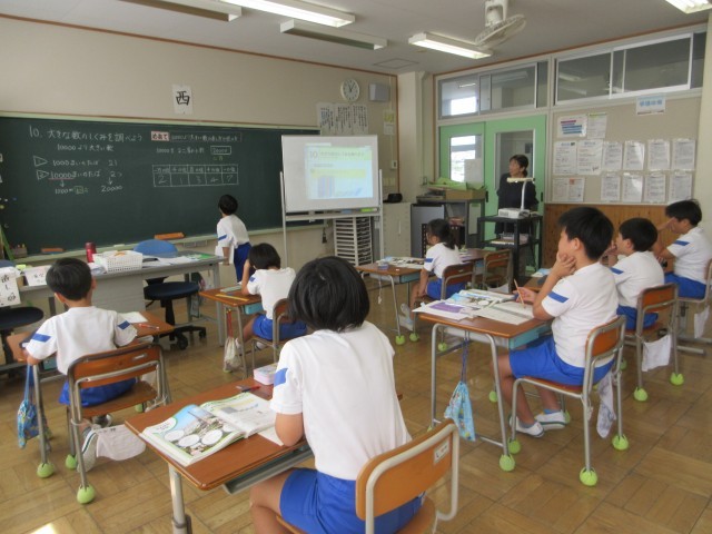 9月29日(月) 3年算数【進んで学ぶ子】 公開日 2025/09/30 更新日 2025/09/30 できごと 「大きな数のしくみを調べよう」の単元に入りました。10000より大きい数を学んでいきます。身近では,一万円などお金で使っている数のようです。少しずつ大きな数になっていきますが,丁寧に練習しています。