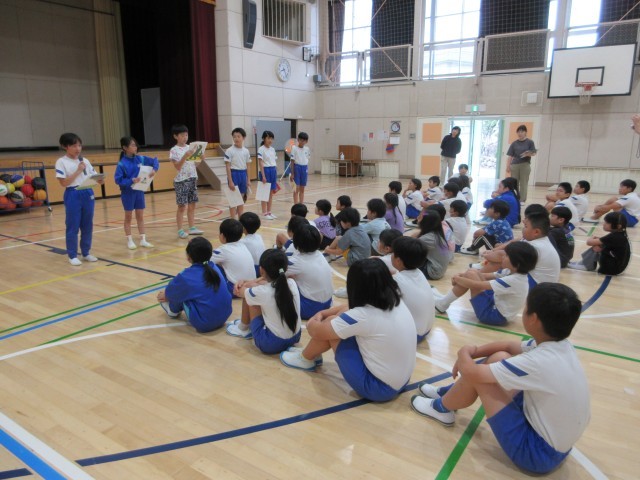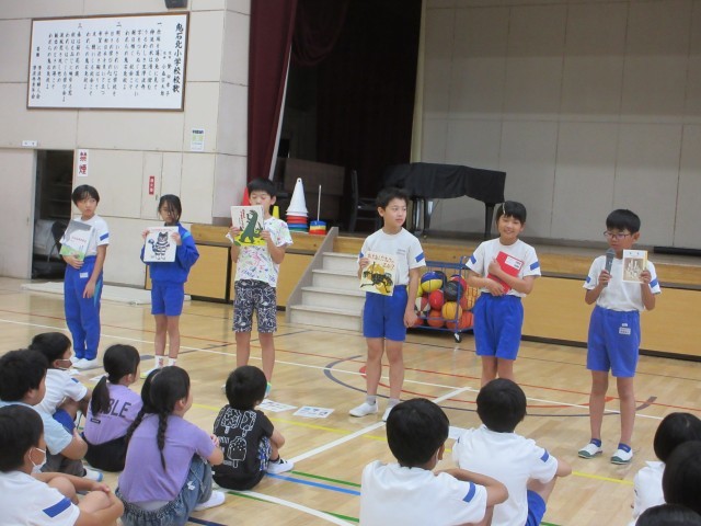 9月30日(火) 児童集会:図書委員会より「おにきた読書月間」【進んで学ぶ子】