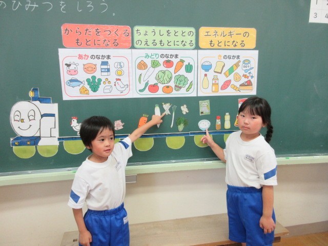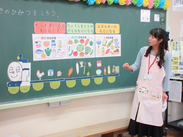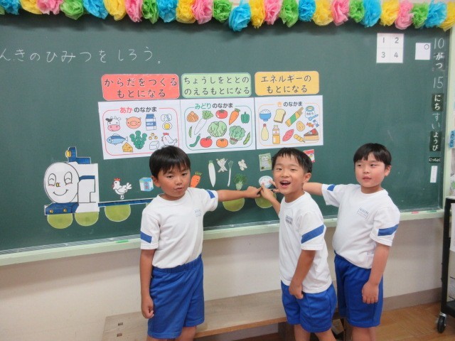 給食センターの栄養士さんを招き、食に関する指導をしていただきました。「元気のひみつを知ろう」の学習で、栄養士さんから3つの大事な栄養素について学びました。苦手なものも、「ちょっとは食べる」「がんばって食べる」と意欲的で、給食で実践しようと話しています。食べることは、生きること。今日学んだことが、これからの生活につながることを願っています。