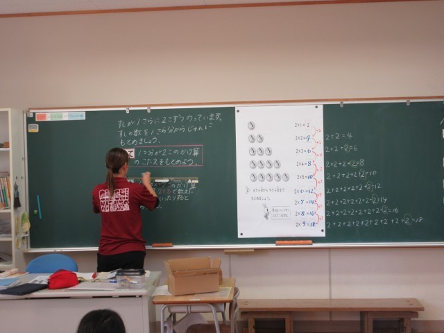 かけ算の学習が始まっています。今日は2の段の仕組みを考えることが学習のメインです。「2,4,6,8,・・・2とびになっているな」など、子供たちは1つ分が2個のまとまりの時、どのような式になり、どのような答えになるのか図等をもとに考えることができました。算数の基盤ともいえるかけ算の学習。これからも、かけ算の意味を理解し、楽しみながら学習を進めていきます!