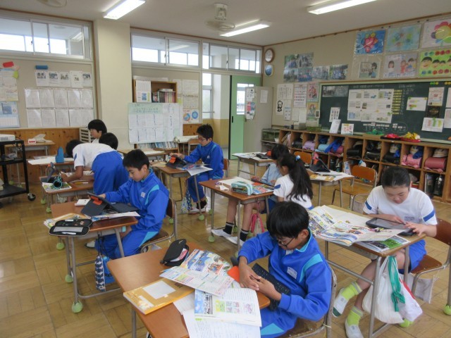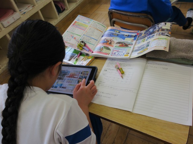 10月31日(金)にスバル自動車工場へ見学に行きます。そのための事前学習で、自分が知りたいことについて、教科書や資料集、タブレットを活用して調べ学習を行いました。自動車ができるまでの過程、働いている人の苦労など、多くのことに興味、関心をもったようです。見学当日は、充実した学びにつながりそうで楽しみです。