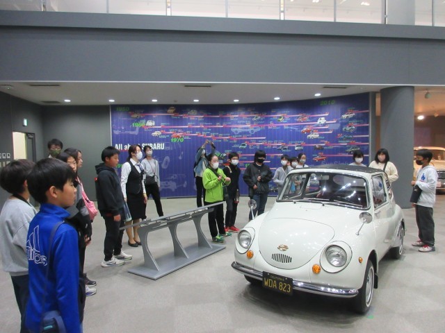 スバル工場へ見学に行きました。どのように自動車が作られるのか、映像を見ながら説明を聞いたり実際に工場内を見学したりしました。1台の自動車ができるまでに、ロボットによって様々な作業をすること、絶対にミスのないように作業に関わる人々がたくさんの努力や工夫をしていることが分かりました。