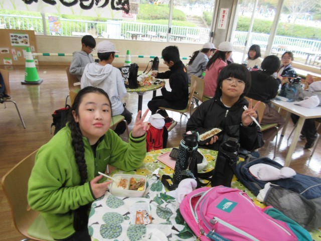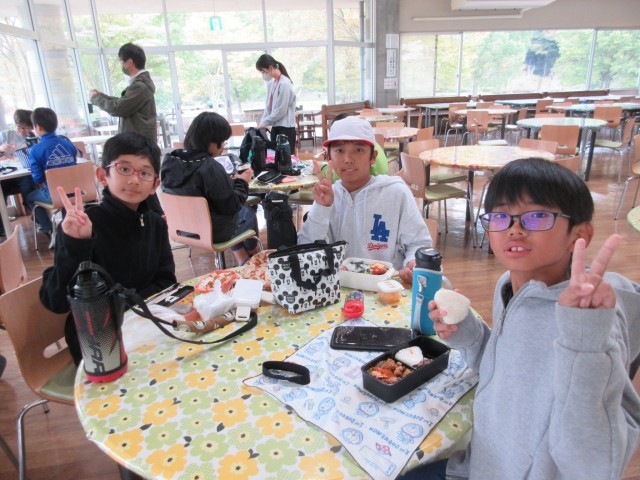 スバルの工場見学後は、ぐんま子供の国でお昼を食べました。少し長い工場見学になったので、おなかをすかせていた子どもたちは、お弁当箱を開け、目を輝かせて嬉しそうに食べていました。