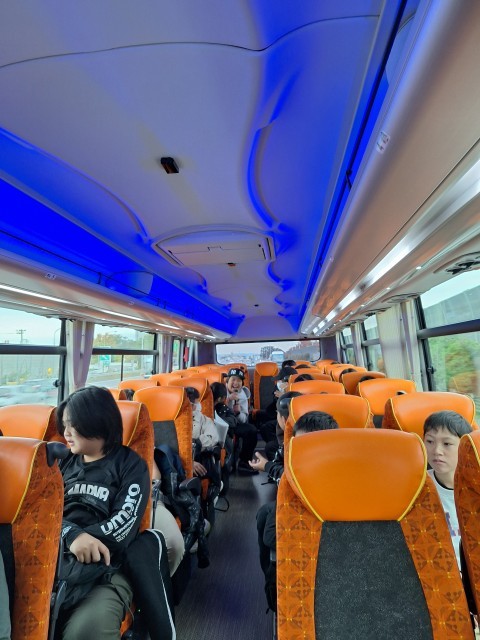 11月13日(木) 6年修学旅行~いざ鎌倉~バス編 公開日 2025/11/13 更新日 2025/11/13 できごと 高坂SAで休憩し、バスの中では、鬼北小のみんなが考えてきた、仲良くなるレクが始まりました。歴史クイズを出す人も答える人も自己紹介をします。盛り上がっています。