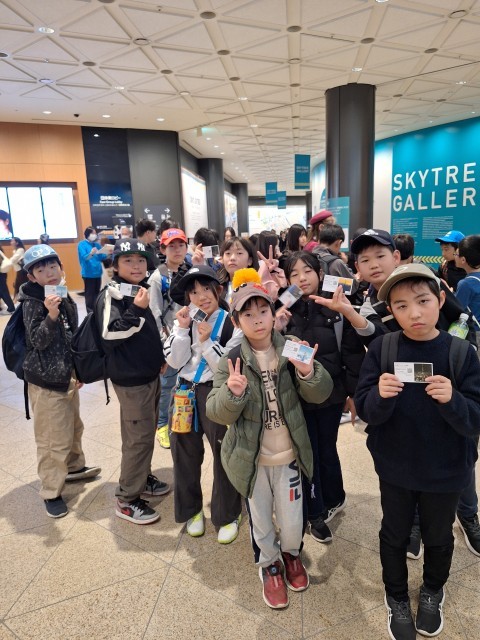 11月14日(金) 6年修学旅行~東京見聞録~スカイツリー編 公開日 2025/11/14 更新日 2025/11/14 できごと スカイツリーに到着です。全員で、記念写真を撮り、展望デッキまで上がり、すばらしい眺めに歓声が上がりました。約1時間班別でスカイツリー見学です。 +2