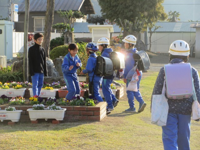 11月17日(月) 人権集中学習 団別あいさつ運動 【思いやりのある子】 公開日 2025/11/23 更新日 2025/11/23 できごと 先週から人権集中学習期間に入っています。テーマは「みんなの幸せをつなぐコミュニケーション」で「みんなが幸せになる話し方・接し方を考えよう」をめあてにしています。今日から団ごとのあいさつ運動が始まりました。気持ちよく晴れた空の下,気持ちのよいあいさつが響きました。