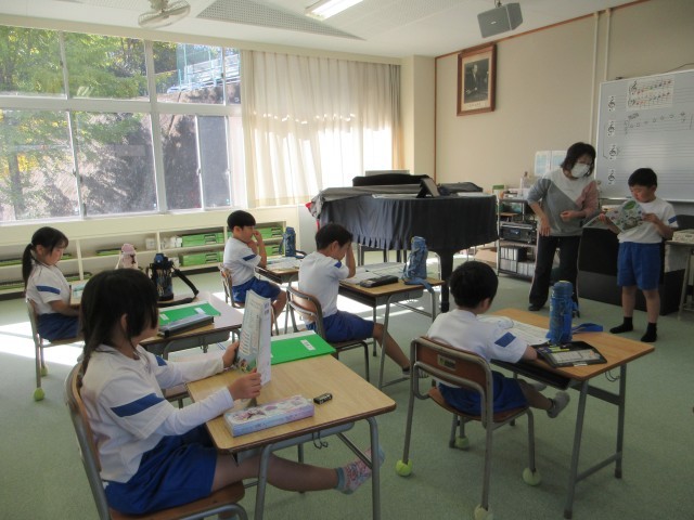 11月17日(月) 1年音楽【進んで学ぶ子】 公開日 2025/11/23 更新日 2025/11/23 できごと 「やまびこごっこ」です。前時はグループでやっていましたが,本時は1人とみんなでやっていました。「やっほー」を自分の好きな言葉にかえることができます。上手にやまびこできるかな。