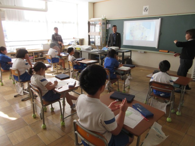 3年生は総合的な学習の時間に,耳の不自由な人のことについて学習しています。市の講師の方に来校いただき,耳の不自由な人の生活や手話について教えていただきました。よく使うあいさつの手話や指文字を教えていただき,お互いにあいさつをしたり,名前を紹介したりしました。ちょうど東京でデフリンピックを開催中です。ニュースも関心をもって見て,学習をより広めたり深めたりできるとよいと思います。
