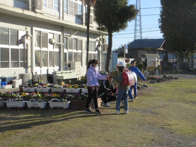11月19日(水) 人権集中学習 団別あいさつ運動【思いやりのある子】 公開日 2025/11/23 更新日 2025/11/23 できごと 団別あいさつ運動3日目はよいお天気でしたがとても寒い朝になりました。そんな中でも,気持ちのよいあいさつとあたたかいスマイルハイタッチで,元気に1日を始められています。