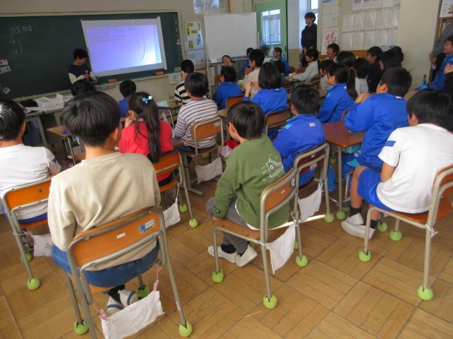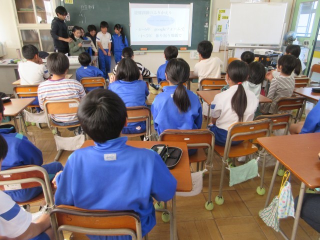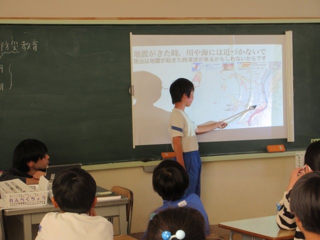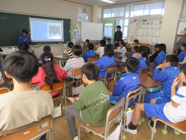 4年生が社会の学習や総合的な学習の時間に防災について調べたことをまとめて,3年生と5・6年生に伝える機会をもちました。