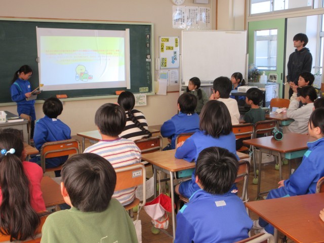 鬼石北小について,すじかいがあることや棚には転倒防止金具が付いていること,非常口や避難所になったときの備蓄品,などの説明がありました。また,藤岡市ハザードマップを提示して,浄法寺地区に住む私たちは災害が起きたときどう行動すべきかの提言もありました。とても充実した分かりやすい発表で,すばらしかったです。