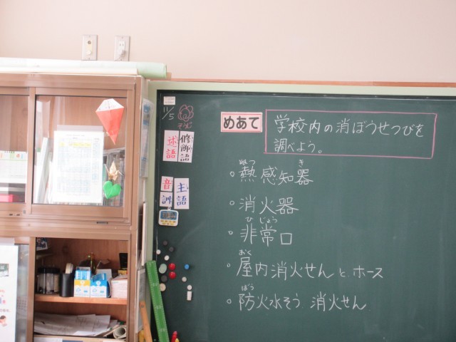 「学校内の消防設備を調べよう」をめあてに学習しました。今週の金曜日に、消防署の見学へ行きます。その事前学習として、校内の消防設備についてどこにどのような物があるかを調べました。予想以上に多くの場所に設備が整っていることを知った子どもたちは驚いていました。