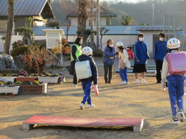 1月8日(木) 小中あいさつ運動【思いやりのある子】 公開日 2026/01/11 更新日 2026/01/11 できごと 新年はじめの小中あいさつ運動がありました。氷点下の寒さでしたが,空は晴れ,太陽の光のあたたかさを感じられる朝でした。 小学生と中学生,教職員,民生委員の皆さんと一緒に,笑顔でハイタッチしながら気持ちのよいあいさつの声が響きました。 皆さん,いつもありがとうございます。