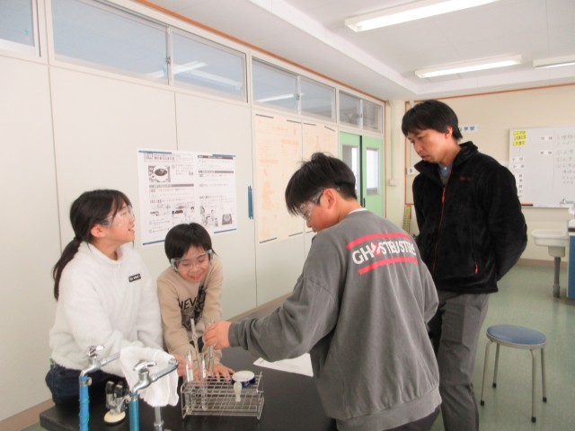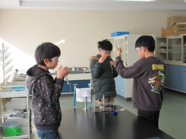 「水溶液の性質」の単元です。5種類の水溶液を分類するにはどうしたらよいでしょうか。目で見る,においをかぐ,加熱する,などの意見が出ました。どれも無色透明で見ては違いが分かりません。次ににおいをかぎます。直接に鼻をつけるのではなく,手であおいでかぎました。さあ,違いが分かったでしょうか。