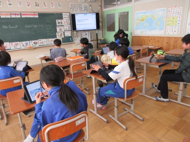 1月15日(木) 6年英語【進んで学ぶ子】 公開日 2026/01/26 更新日 2026/01/26 できごと 「生き物のためにできることを伝え合おう」をめあてに,絶滅危惧種など環境の変化によって危機にさらされている生き物について調べて私たちにできることを英語で伝え合います。地球の生き物の仲間として,“Save animals!” を考えます。