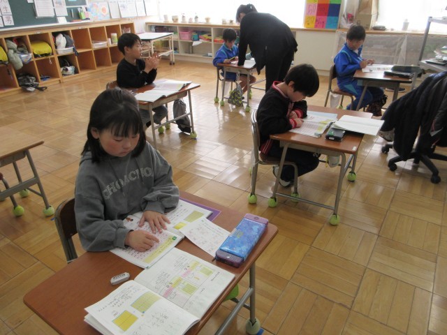 1月20日(火) 1年算数【進んで学ぶ子】 公開日 2026/01/27 更新日 2026/01/27 できごと 1年生も0から100まで数えられるようになりました。0から100までの数が表になっています。表のところどころがあいています。たてよこの数のルールを考えて,あてはまる数を入れます。数えながら,ていねいに数字を入れていました。