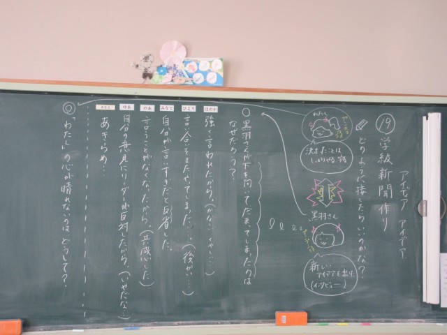 「広い心をもって」をテーマに、お話を使ってみんなで考えました。人と一緒に生活をする中では、様々な考えに触れる場面があると思います。自分とは違う意見に対して、どうすることがよいのか・・・子どもたちは、普段の生活を振り返りながら、人と一緒に過ごしていくときに大切なことについて、深く考えることができました。