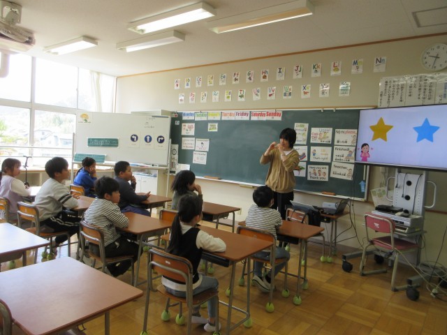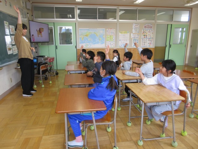 4月9日(木) 3年外国語活動【進んで学ぶ子】 公開日 2026/04/09 更新日 2026/04/09 できごと 3年生の外国語活動には,鬼石小の先生が来てくれます。先生の英語の自己紹介を聞いて,好きな色や動物などたくさんのことが分かりました。3年生の中に同じ色や動物を好きな人もいて,すぐに仲良くなれました。