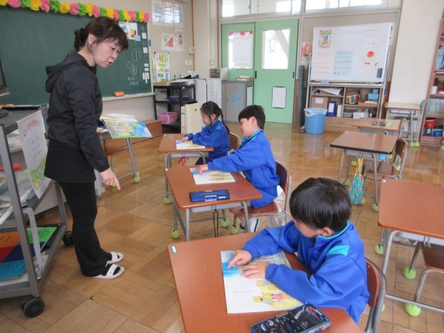 4月13日(月) 1年国語【進んで学ぶ子】 公開日 2026/04/19 更新日 2026/04/19 できごと 国語の教科書を開くと,とても春らしいイラストともに「はるがきた」の文章がありました。範読をきいたあと,音読していきます。指で文字を追いながら,丁寧に読んでいきます。