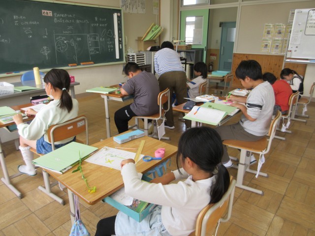 4月13日(月) 3年理科【進んで学ぶ子】 公開日 2026/04/19 更新日 2026/04/19 できごと めあては「虫めがねを使って花を観察して記録しよう」ということで,菜の花やホトケノザなどから自分で選んだ花を観察して記録します。前時に学んだ虫めがねの使い方などを思い出してから,集中して観察です。見やすく記録できています。