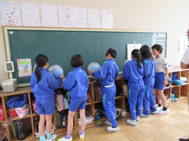4月13日(月) 5年社会【進んで学ぶ子】 公開日 2026/04/19 更新日 2026/04/19 できごと 「世界の中の国土」の単元です。五円玉のデザインの秘密から始まりましたが,5年生では農業,工業,水産業など日本のことを学んでいきます。まずや地球儀や地図から,世界の中の日本について学習課題を考えます。いろいろなことが気になったようです。