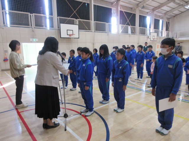 4月14日(火) 任命式 公開日 2026/04/19 更新日 2026/04/19 できごと 任命式を行いました。児童会本部役員と各学年の学級委員の皆さんに任命書が渡されました。本部役員や学級委員さんを中心に,みんなで心を一つにして,よい学校よい学級にしていきましょう。