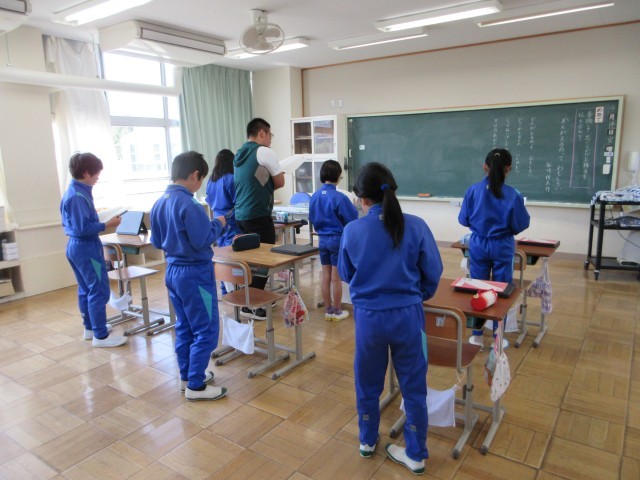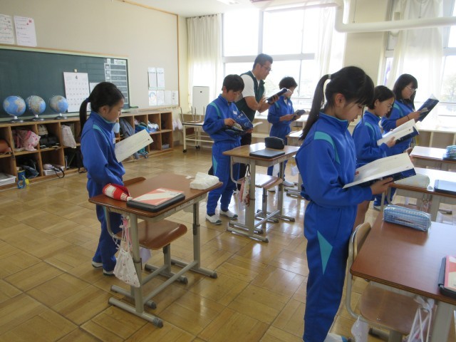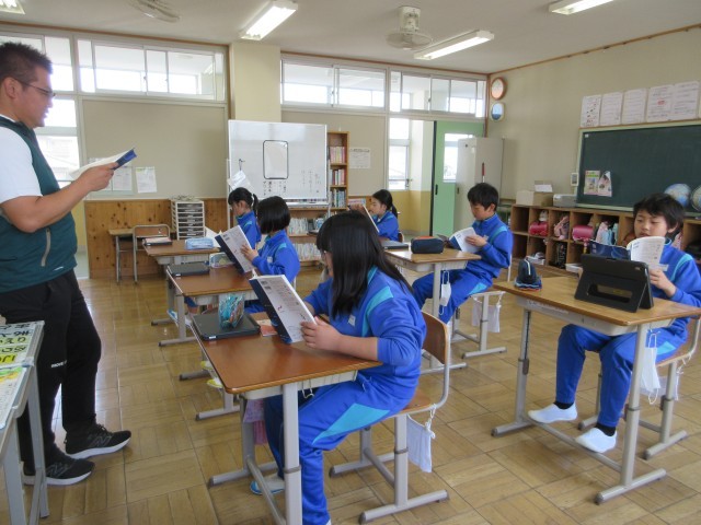4月14日(火) 5年国語【進んで学ぶ子】 公開日 2026/04/19 更新日 2026/04/19 できごと 谷川俊太郎さんの「かんがえるのっておもしろい」を読んでいます。音読して,感じたことを伝え合ったり,工夫して音読したり,していきます。繰り返し読むといろいろな味わいがあるようです。
