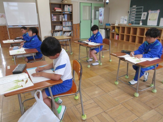 4月15日(水) 2年国語【進んで学ぶ子】 公開日 2026/04/19 更新日 2026/04/19 できごと 工藤直子さんの「ふきのとう」を読んでいます。まだ残る雪,竹やぶ,お日さま,春風,みんなの力をかりて,ふきのとうがふんばり顔を出します。ふきのとうの気持ちになってみました。ふんばり顔を出し,春を感じられたかな。
