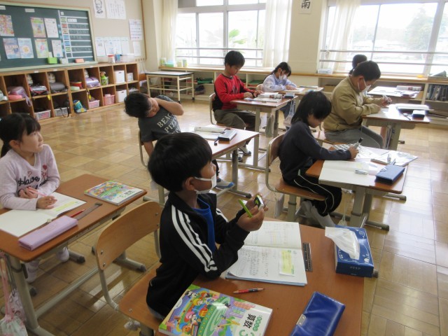 4月15日(水) 3年算数【進んで学ぶ子】 公開日 2026/04/19 更新日 2026/04/19 できごと 「かける数が10より大きいかけ算のしかた」に挑戦です。図にかこうとして数の多さに困りながら,前時に学んだことで,10のかけ算はかけられる数に0(ゼロ)を付けると答えになることを思い出し,かける数を10といくつに分けると簡単になりそうなことに気が付きました。あとは正確に計算するだけです。