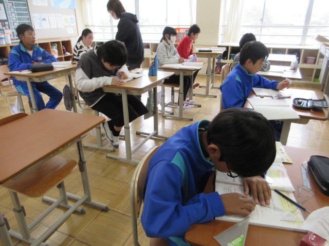 4月15日(水) 6年算数【進んで学ぶ子】 公開日 2026/04/19 更新日 2026/04/19 できごと 線対称の図形の特徴を調べます。まず自分で線を引いたり計ったりして特徴を調べます。そして,全体で共有して,線対称の図形の美しさを感じました。