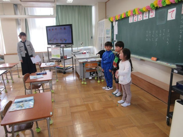 4月24日(金) 授業参観(1年国語)【進んで学ぶ子】 公開日 2026/04/26 更新日 2026/04/26 できごと 1年生の授業参観は国語です。ひらがな「て」の練習と音読の発表をしました。保護者の方や保育園でお世話になった園長先生も見えていましたが,いつもと変わらず,元気いっぱいに取り組んでいました。