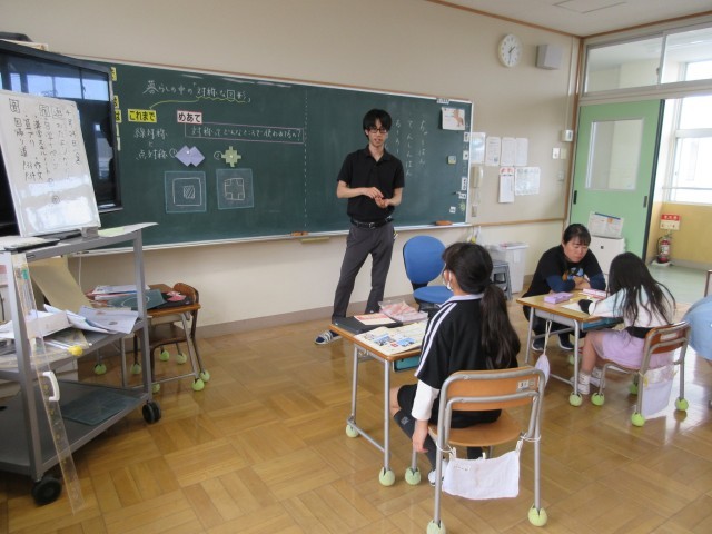 授業参観は算数でした。6年生は,これまで線対称と点対称を学習してきましたが,生活の中で使われている対称な図形を見つけて調べています。2年生は「○○はん」がいっぱい出ていましたが,算数の計算中です。とってもなごやかな雰囲気で学習が進んでいました。