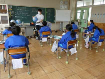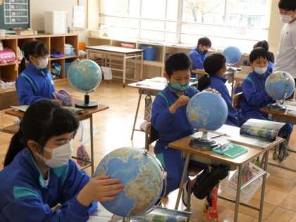 4月11日(月)地球儀を使って地球を見てみよう 公開日 2022/04/11 更新日 2022/04/11 できごと 5年生の社会科は、地球儀を使った授業でした。 4年生までは、群馬県を中心に勉強してきましたが、5年生の社会科はこれまでの学習を元に、日本の産業や工業などを勉強していきます。 空から地球を見るつもりで、いろいろな国を探したり、日本の特徴を見つけたりしました。