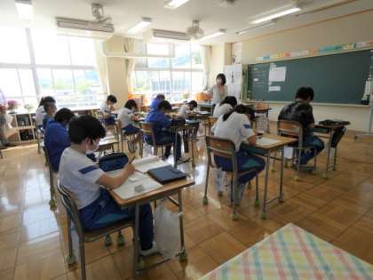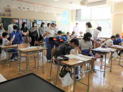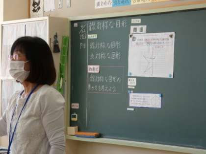 4月22日(金)授業参観 6年生 公開日 2022/04/22 更新日 2022/04/22 できごと 6年生は算数の授業参観でした。 これまでの学習で、線対称な図形は180°回転すると重なることを勉強しました。 その性質などを使って、線対称な図形の書き方を考えました。 友達に自分の考えを説明し、自信をもって勉強することができました。