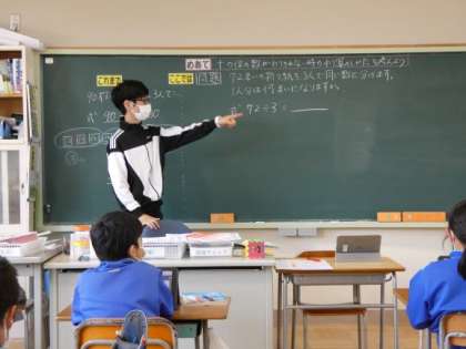 5月2日(月)4年生 算数 公開日 2022/05/02 更新日 2022/05/02 できごと 4年生の算数は、十の位にあまりが出る計算の仕方を考えました。 これまでと同じように考え、説明できるように図で表現しました。 友達の考えが自分と同じなのか、どこが違うのか、真剣に考えながら勉強していました。 これからも、積極的に自分の考えを発表してほしいと思います。