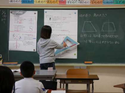 6年生の算数は、対称な図形のたしかめ問題に取り組んでいました。