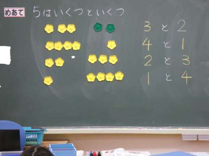 1年生の算数は、「5はいくつといくつ」からできているか、考えました。