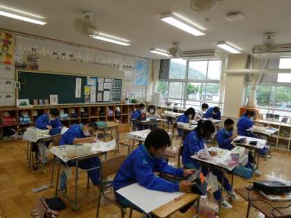 5月16日(月)楽しかった思い出を絵に残そう 公開日 2022/05/16 更新日 2022/05/16 できごと 6年生の図工は、「少年の日 家庭の日」の絵を描いていました。 人物やその場の様子が大きく描かれ、楽しかった思い出が伝わってくる素敵な絵に仕上がりそうです。 一人一人、伝えたい思いを込めて、集中して作品に向かっていました。